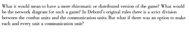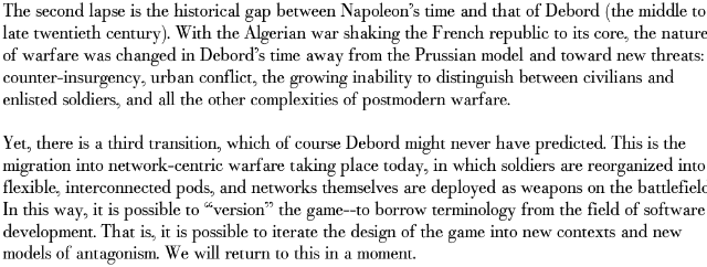 and slipping into a rogue faction of their own? New rules would have to be devised over Debord’s original game.”